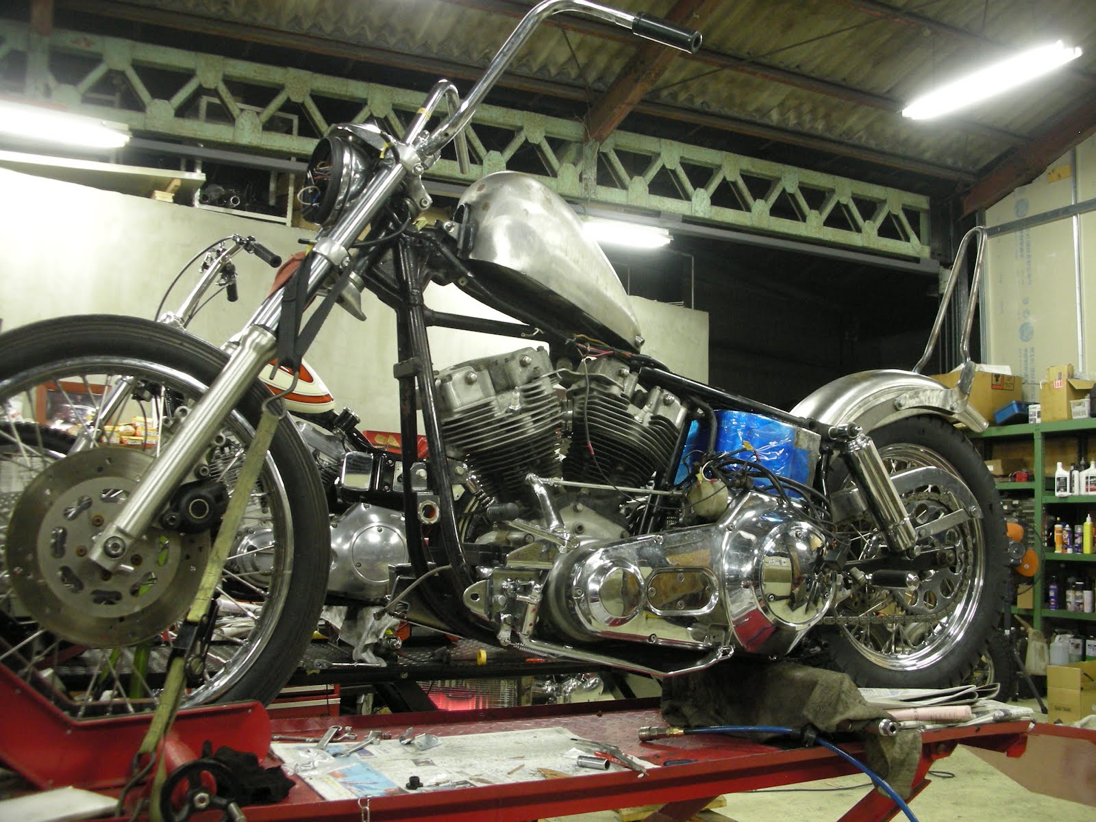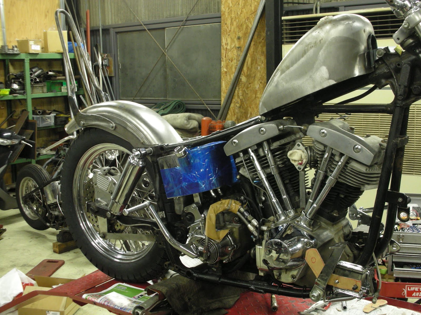 Sissy Bar完成しております O様 コントロール系に取り掛かっております!また時間ができたら 打ち合わせにお寄りください!!